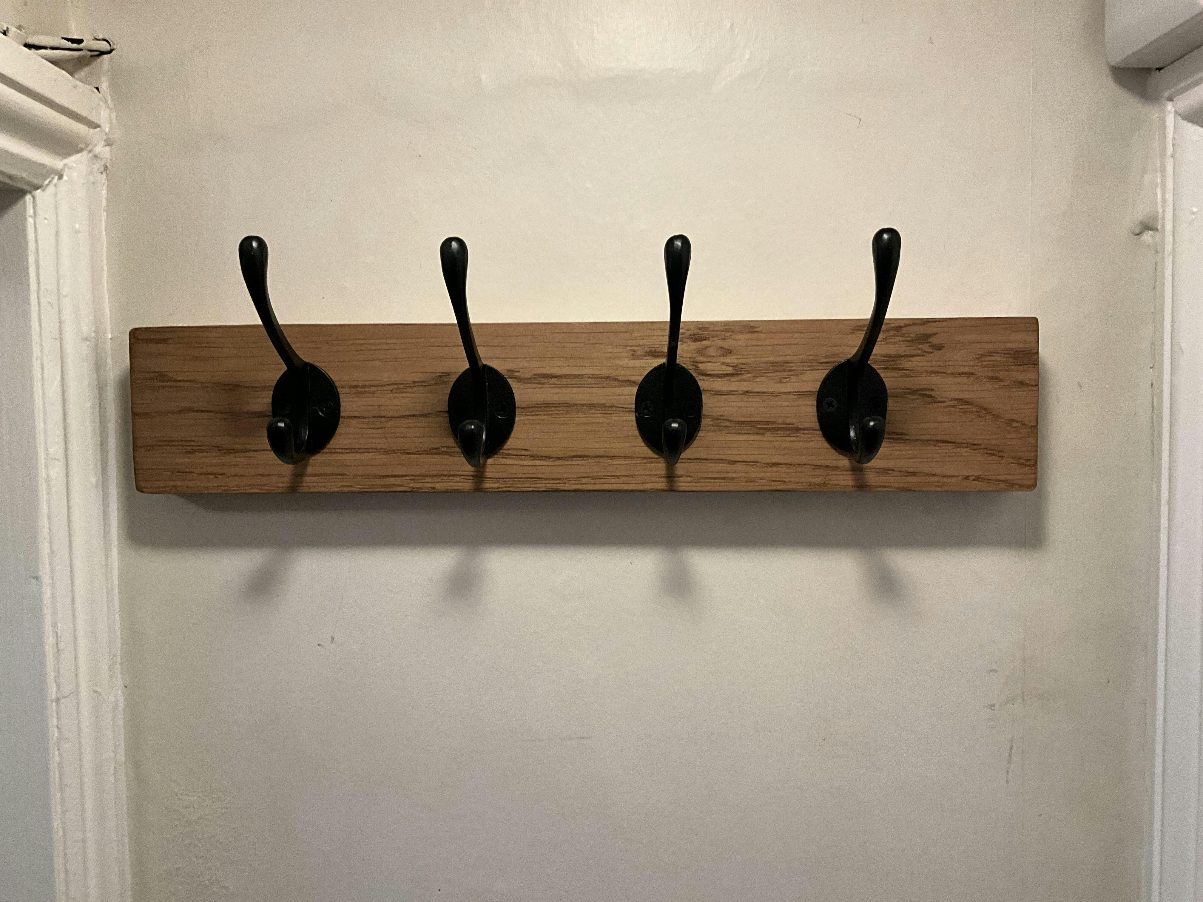 Great quality - lovely wooden coat rack. Easy to put up, with all the fittings supplied. Looks lovely in our hallway. Can fit lots of coats on it.